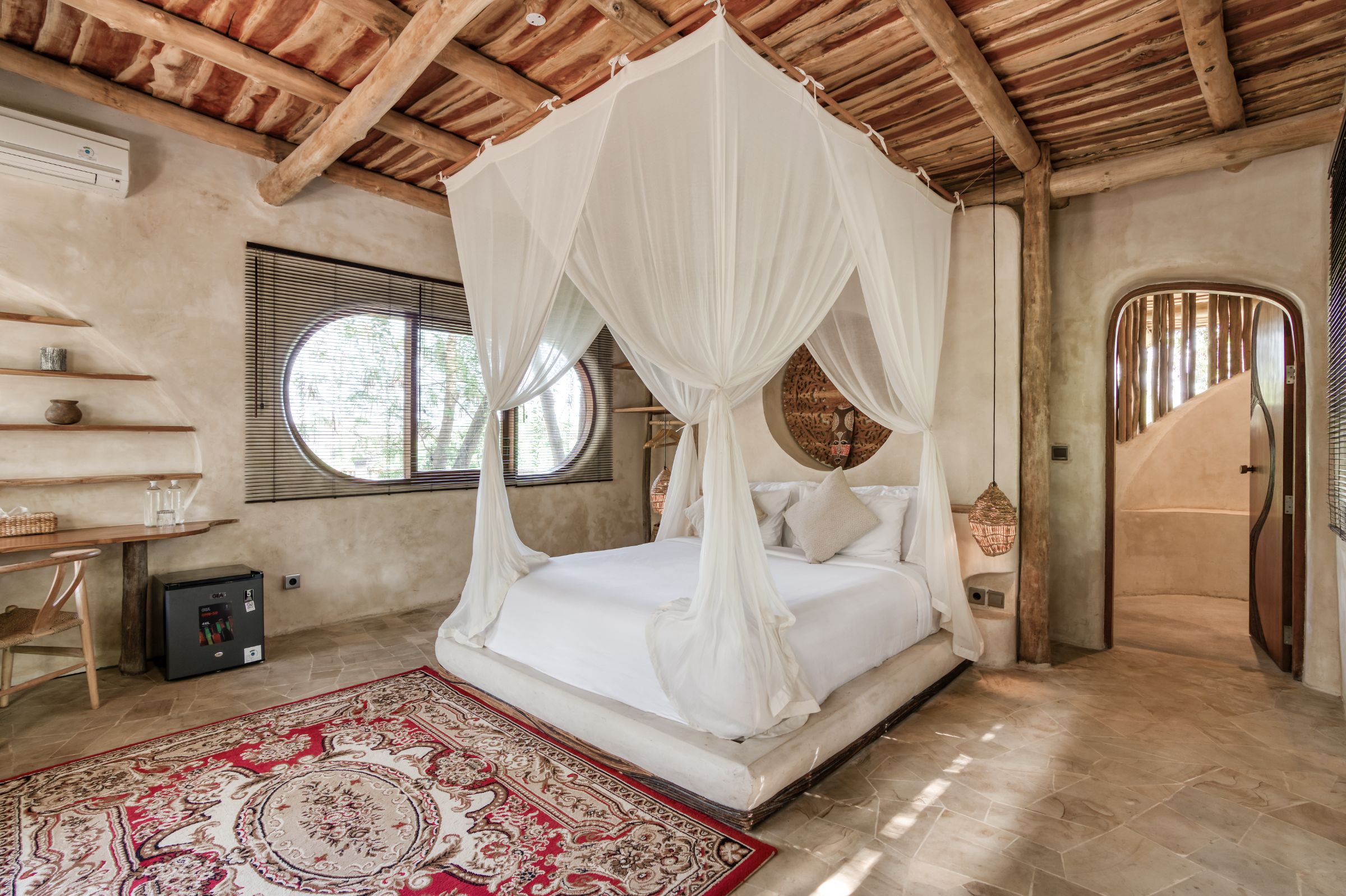 Ensuite Bathroom With Hot and Cold Water, Hairdryer, Shower, Toilet, Toilet paper, Toiletries, Towel, Air Conditioning, Bed Sheets, Mosquito Net, Slippers, Wardrobe, Working Table, Free WiFi, Coffee and Tea Maker, Electric Kettle, Mini Bar, Pool View