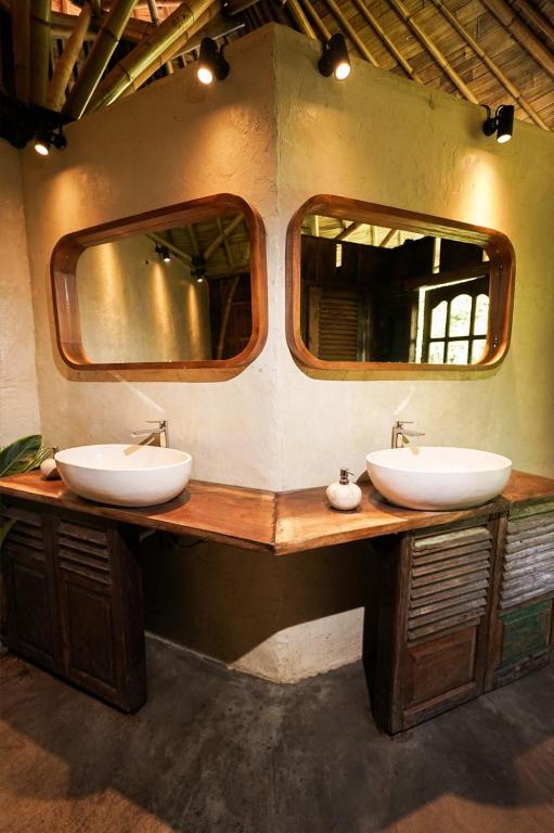 Sungai Huts in Tabanan offers luxury tent accommodation with garden and terrace views. The property features a paid airport shuttle service, ensuring convenient travel arrangements. Each tent includes a shared bathroom with a shower, an outdoor dining area, and a seating area. Guests can enjoy garden views and relax in the serene surroundings. Located 24 km from Ngurah Rai International Airport, Sungai Huts is an 18-minute walk from Nyanyi Beach. Nearby attractions include Tanah Lot Temple (4 km) and Petitenget Temple (15 km).